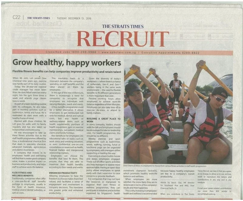 A feature for Dow in The Straits Times, Singapore’s national newspaper.